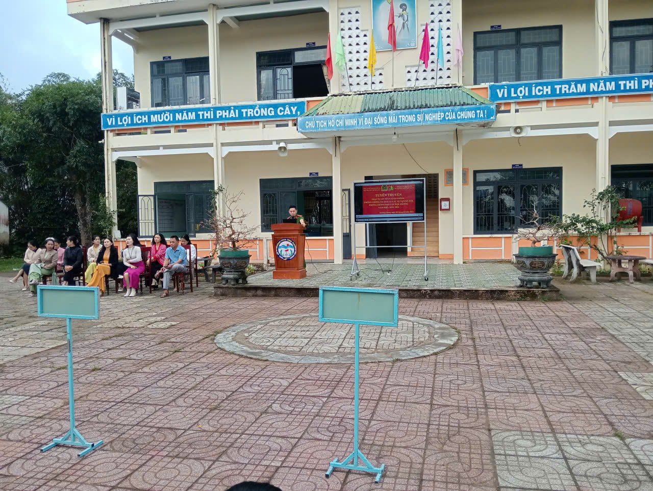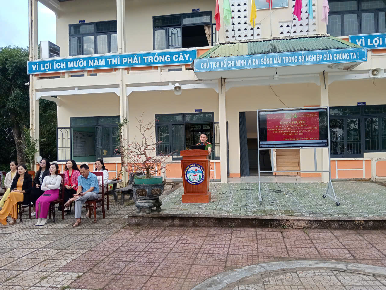 Nhằm nâng cao ý thức chấp hành pháp luật về trật tự, an toàn giao thông trong dịp trước, trong và sau Tết Nguyên đán, Ngày 09/02/2026, Công an xã Trường Giang đã phối hợp với nhà trường tổ chức buổi tuyên truyền, phổ biến kiến thức pháp luật về an toàn giao thông cho cán bộ, giáo viên và học sinh.